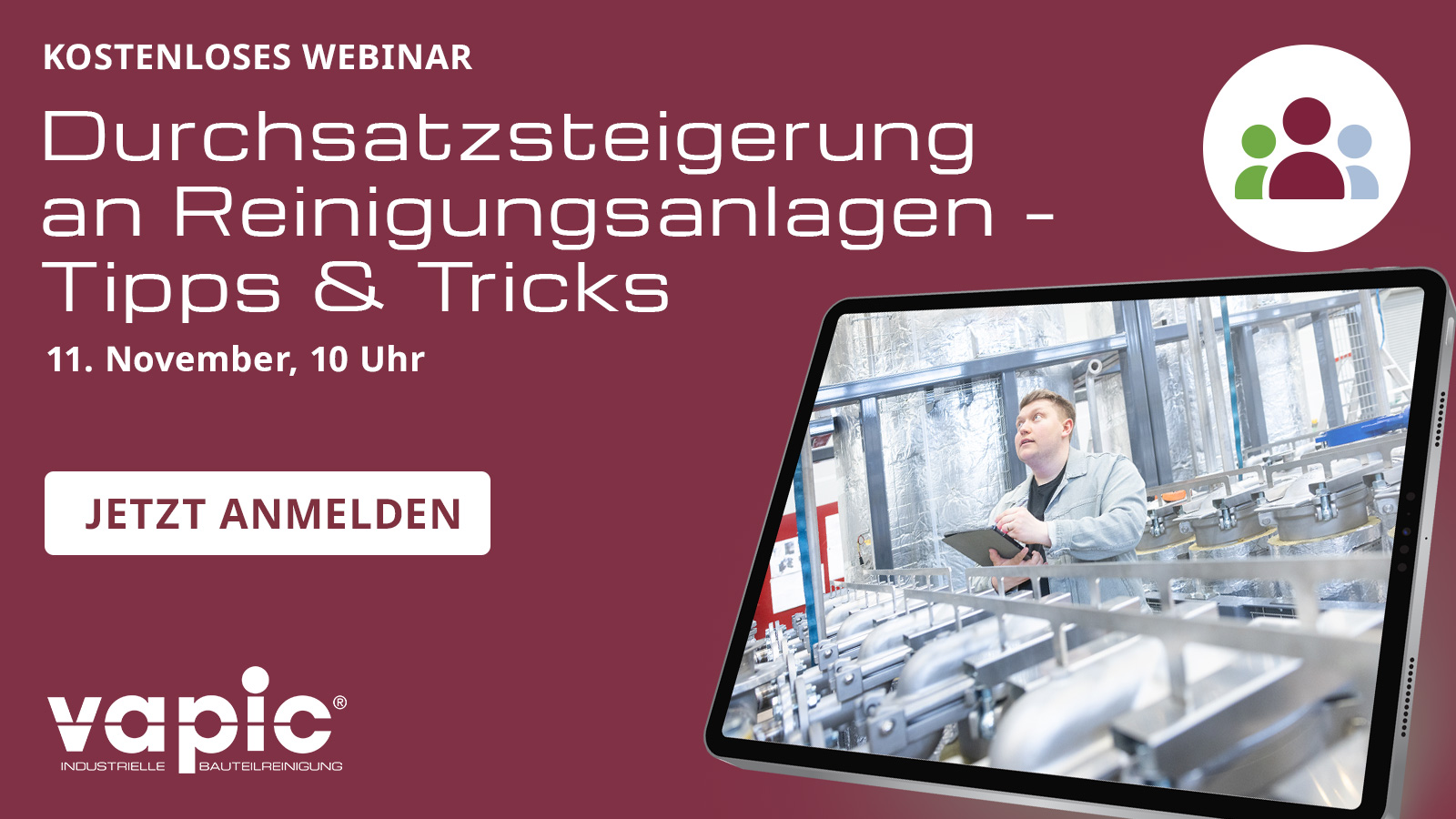 Wir laden Sie herzlich ein, an unserem Webinar „Durchsatzsteigerung an Reinigungsanlagen: Tipps & Tricks“ teilzunehmen. 🚀🛠️