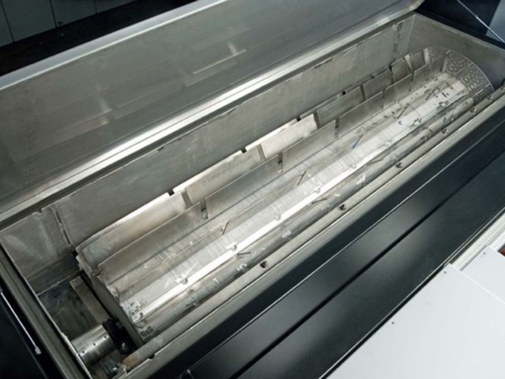 The washing drum of the cleaning unit at BEWO can accommodate pipes of various dimensions and thicknesses.